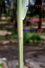 לעיתים קרובות מצויה לשונית במפגש של הנדן והטרף. לעתים ישנן כאן "אוזניות" (ברורות במיוחד בסוג שעורה). עורקי העלים הנראים לעין מקבילים ומקשרים ביניהם עורקי רוחב מיקרוסקופיים.