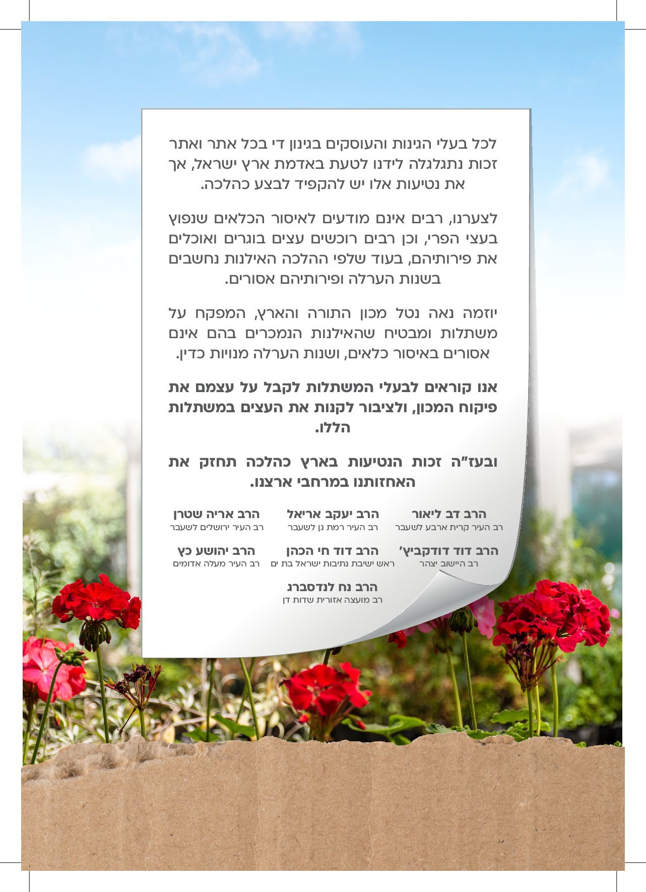 משתלת גרנות, בסמוך לטבריה עלית, הצטרפה למשתלות המפוקחות! כעת, תוכלו לרכוש בה עצים ללא כלאים, ועם מניין ברור של שנות הערלה. נזכיר בהזדמנות זו את קריאת הרבנים להקפיד לרכוש דווקא ממשתלות בעלות פיקוח הלכתי.
