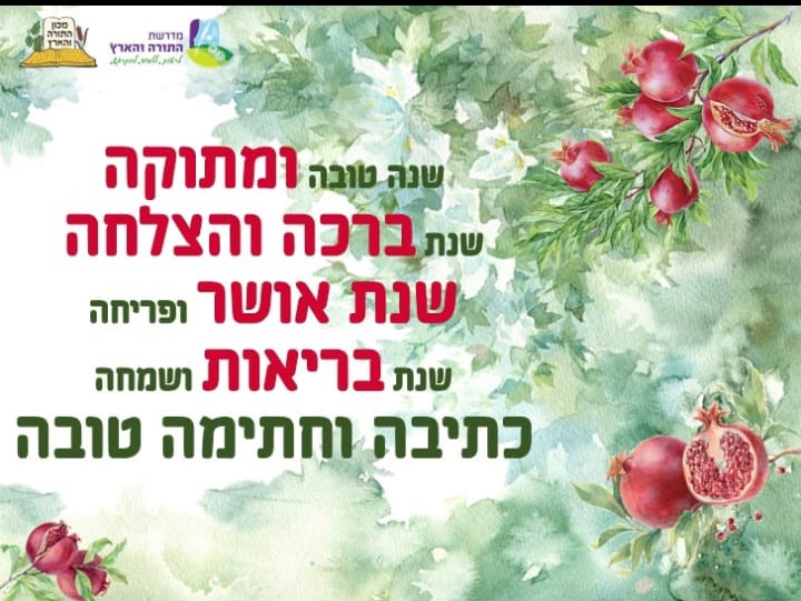 מכון 'התורה והארץ' מאחל לכם, בתוך כל עם ישראל, שהקב"ה יערה עליכם רוח קדושה וטהרה ממרום, שבשנה החדשה יפתחו לכם שערי שמים לברכה ופרנסה טובה.