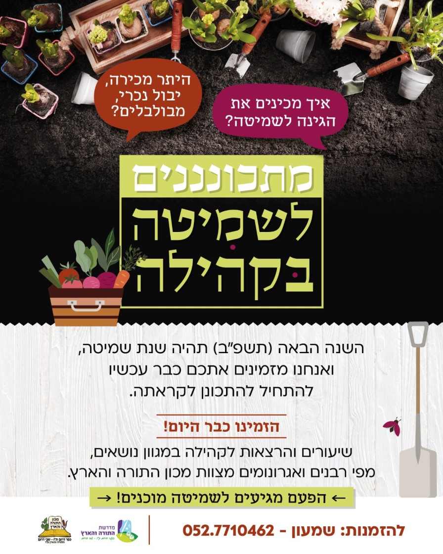 שנת תשפ"ב היא שנת שמיטה, ואנו מזמינים אתכם ללמוד בצורה מסודרת וחווייתית על הנושאים השונים.