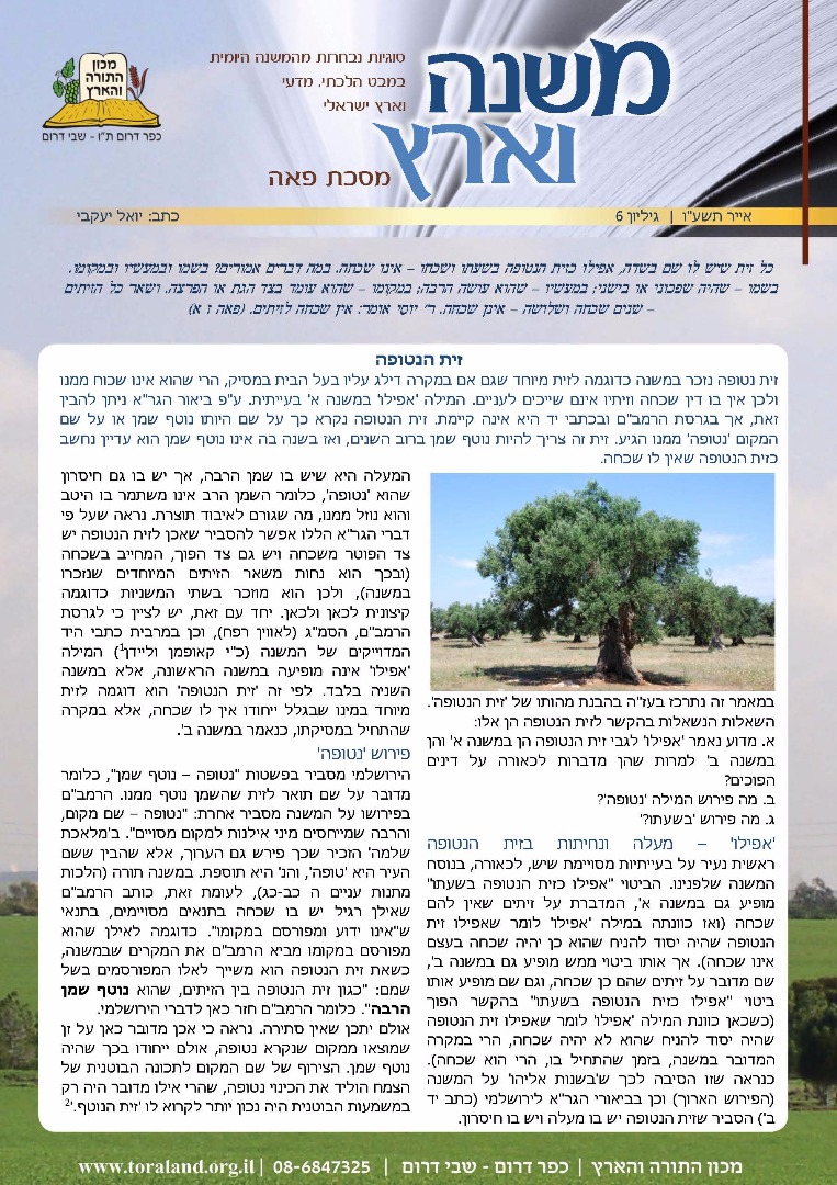 במאמר זה נתרכז בעז"ה בהבנת מהותו של 'זית הנטופה'. השאלות הנשאלות בהקשר לזית הנטופה הן אלו: