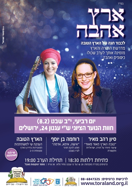 לכבוד חגה של הארץ הטובה - מדרשת התורה והארץ מזמינה אותך לערב שכולו כיסופים ואהבה