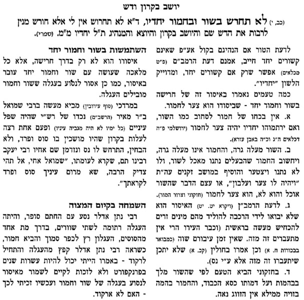 "לֹא תַחֲרֹשׁ בְּשׁוֹר וּבַחֲמֹר, יַחְדָּו."(ספר דברים, כ"ב, י')