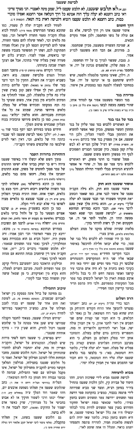 "לא תלבש שעטנז צמר ופשתים יחדיו" (דברים כ"ב, י"א)