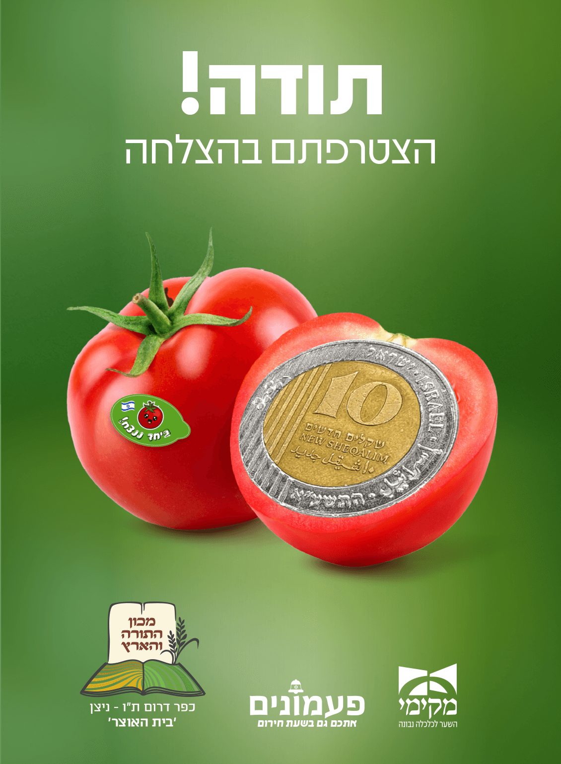 מעתה ואילך, אתם רשומים כמנויים לבית האוצר ותזכו להיות שותפים בקיום מצוות מעשר ראשון, מעשר שני ומעשר עני כהלכתה.
