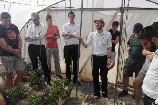 לאחר הרצאה שעסקה בהלכות מצוות התלויות בארץ, ירדו התלמידים לשטח: סיירו בחממת גידול ירקות, התבוננו בסוגי עצים שונים וכיצד הם מורכבים, למדו על ההבדל בין עץ לבין ירק, צפו בחממת ניסוי גידול כרוב בשמיטה. בנוסף, הם הפרישו בפועל תרומות ומעשרות, עבור רבים מהם, זו הייתה הפעם הראשונה בחייהם שבה זכו לקיים את מצוות הפרשת תרומות ומעשרות התלויה בארץ. אחר כך נסעה הקבוצה למטע אתרוגים, וראתה כיצד האתרוגים גדלים. את הסיור הנחה הרב משה בלום, ראש מחלקת אנגלית במכון התורה והארץ.
